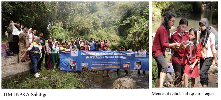 Masih diwilayah  Jawa Tengah dari Semarang beralih ke Salatiga yaitu di Kalibanteng Kutawinangun Kidul. Kegiatan di Salatiga, JKPKA dan PJT I  berkolaboirasi dengan komunitas  GANDURASA (Gerakan Peduli Air dan Sungai Salatiga)  sehingga peserta yang terlibat dalam kegiatan ini tidak hanya siswa dan guru pembimbing tetapi juga dari Masyarakat. Data hasil pemantauan dengan parameter fisik antar lain air sunginya tidk berwarna/jernin, rentang suhu air sungai sebesar 24°C-25°C; kecepatan 0,3-0,36; kekeruhan antara 36-110 cm. Untuk Parameter kimia pH 6,2-6,5; dengan kandungan mineral yang beragam seperti klorin bebas (Cl2), bromin (Br), besi (Fe), tembaga (Cu), timbal (Pb), nitrat, nitrit, flouride, karbonat dan total alkali beragam masih dibawah batas baku mutu air minum dan mandi. Pencaian hewan makroinvertebrata setelah dihitung mnggunakan Indeks Kualitas Air (IKA) menunjukkan  skor sebesar 6,2.